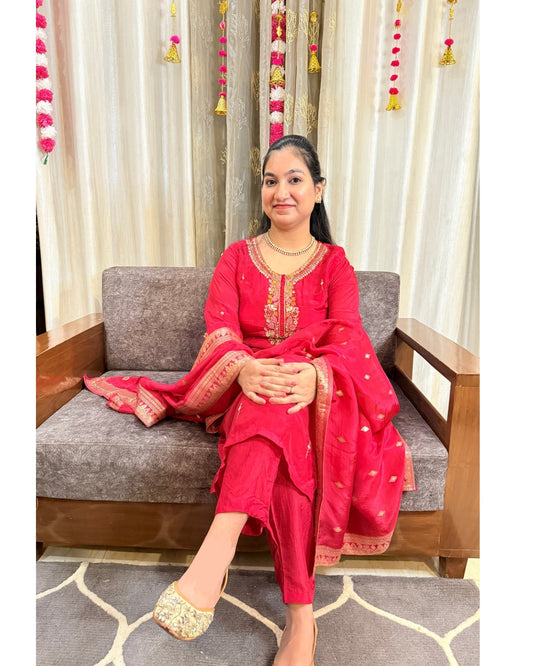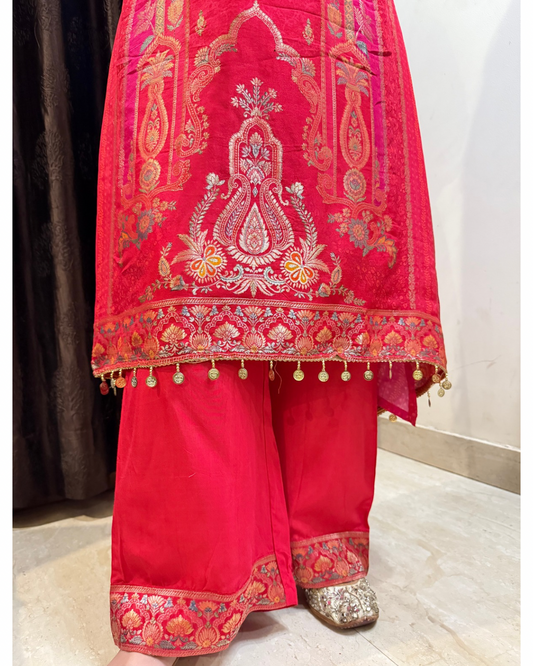 Gulmohar Maroon Embroidered Kashmiri Woollen Kurti